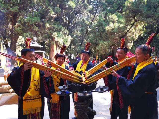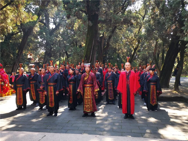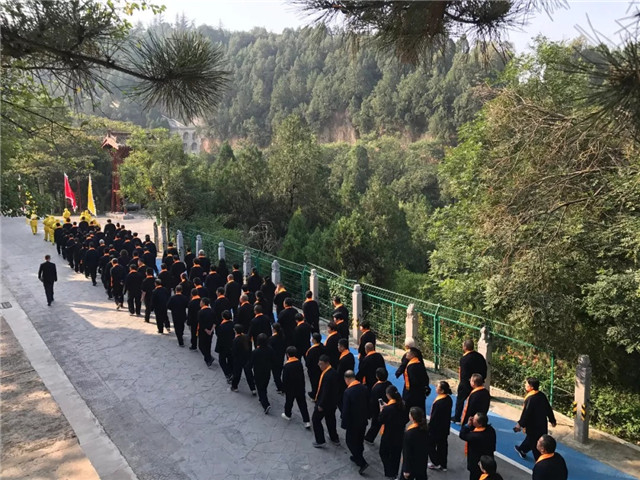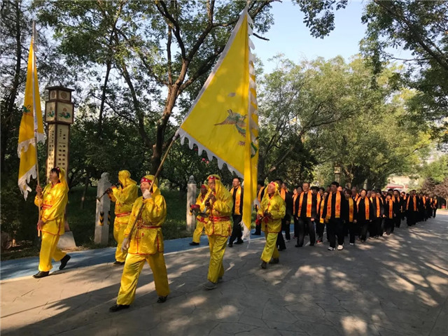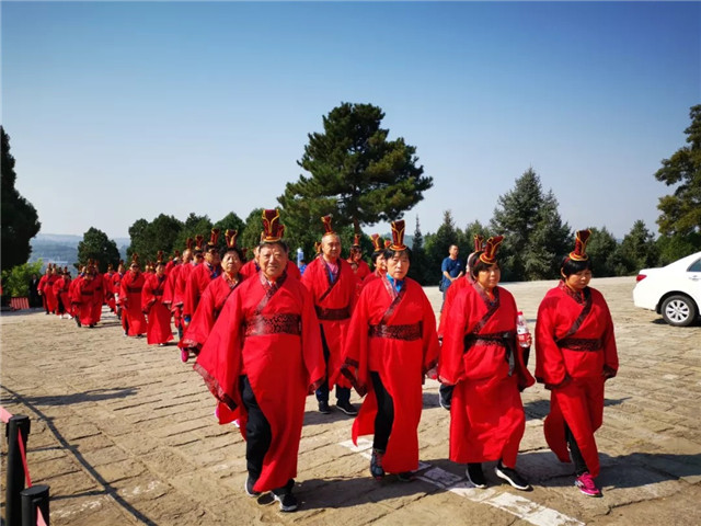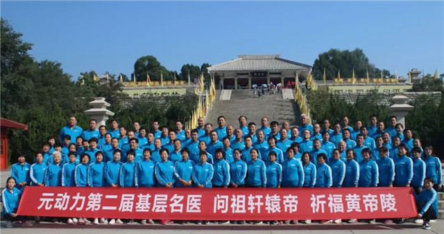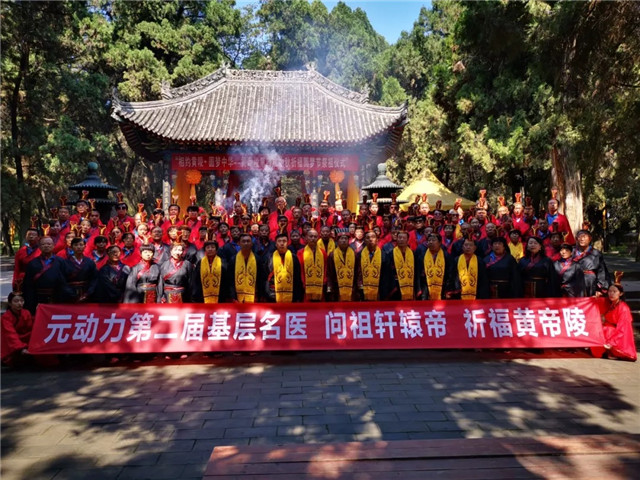 "华夏第一陵"晴空万里,元动力基层名医着庄重汉服,整齐划一的步入陵前,进行庄严而神圣的祭祀活动。