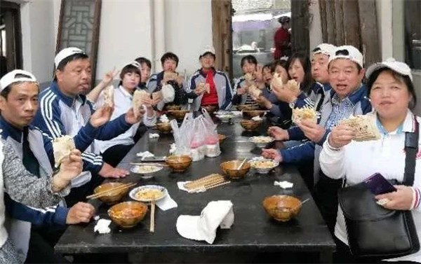 吃饱了,喝涨咧,咱跟皇上一样咧!